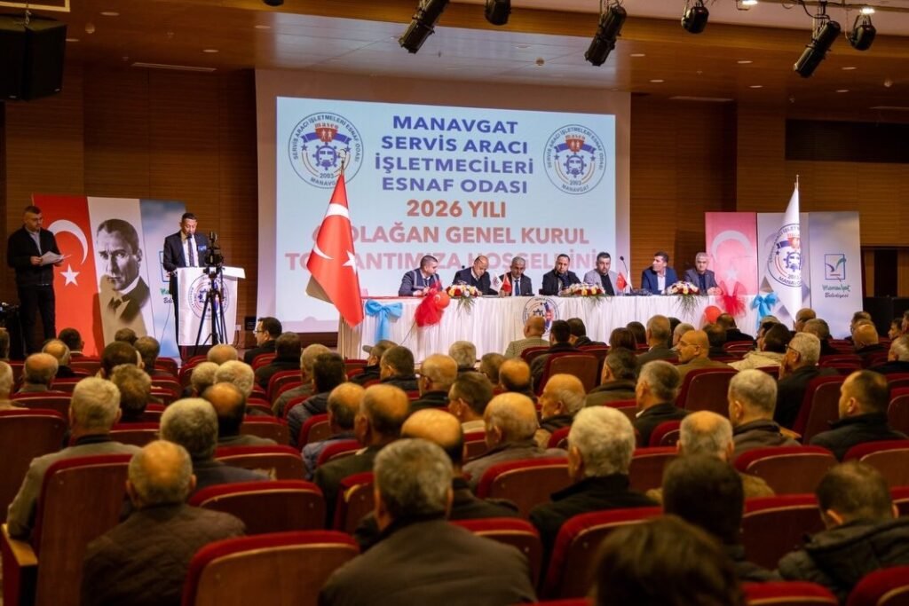Manavgat Belediyesi Atatürk Kültür Merkezi’nde gerçekleştirilen genel kurula servisçi esnafı yoğun ilgi gösterdi.