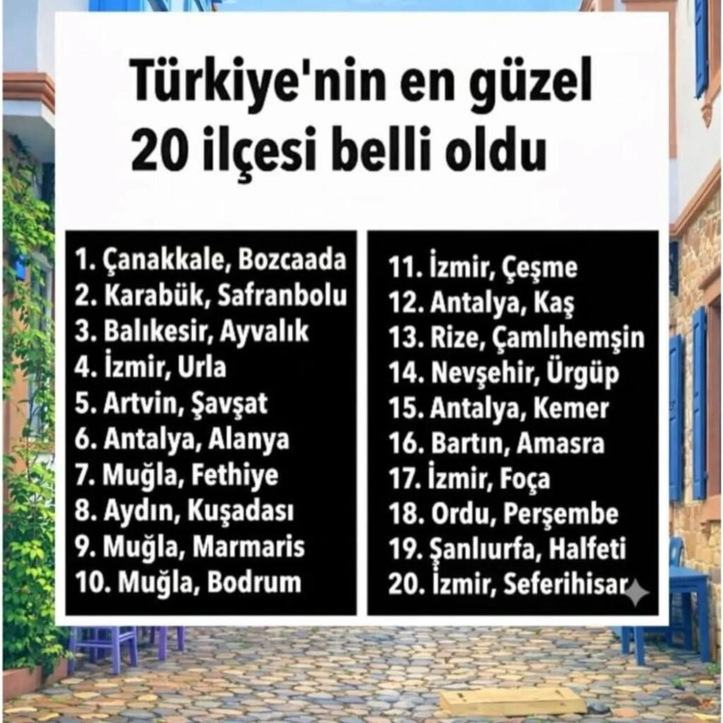 Türkiye’nin en güzel ilçeleri hangileri diye bir anket yapılmış ve sonuçlar açıklanmış..